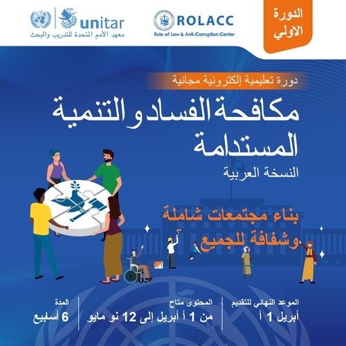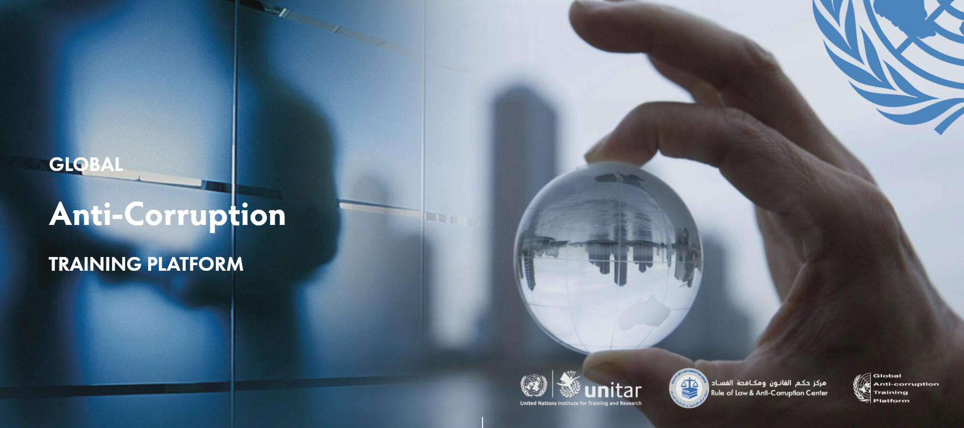 منصة العالمية للتدريب على مكافحة الفساد هي مشروع مشترك بين مركز حكم القانون ومكافحة الفساد (ROLACC) ومعهد الأمم المتحدة للتدريب والبحث (UNITAR) الذي يجمع في بوابة إلكترونية مجانية واحدة مجموعة من موارد التدريب والتعلم المتعلقة بمكافحة الفساد. وهو يحتوي على سلسلة من أحدث دورات التعلم الإلكتروني التي تم إنتاجها من كل من مركز حكم القانون ومكافحة الفساد ومعهد الأمم المتحدة للتدريب والبحث حول موضوعات مثل “الأدوات الرقمية لمكافحة الفساد” و “مكافحة الفساد وحقوق الإنسان” و “مكافحة الفساد والتنمية المستدامة” ، بالإضافة إلى استضافة مجموعة من منشورات الأمم المتحدة التي يمكن للأفراد المهتمين الرجوع إليها.