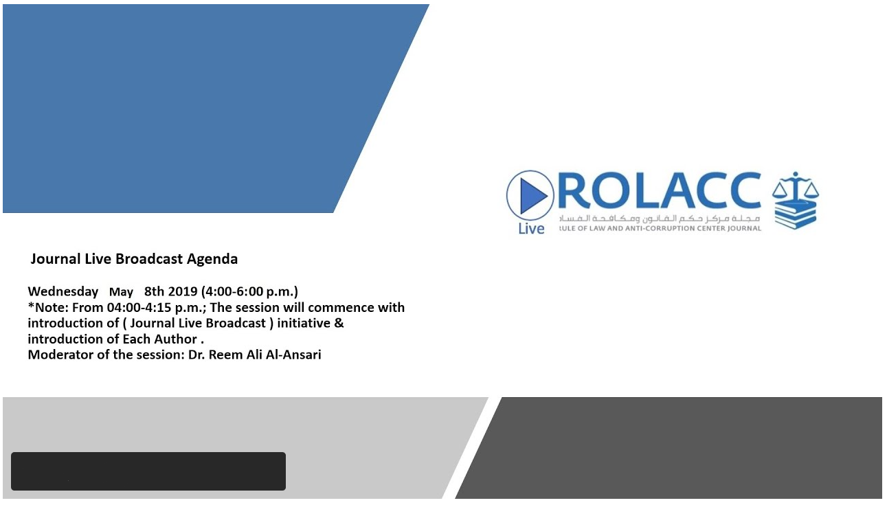 / January 15, 2020 Call for Papers – 5th Issue – Rule of Law and Anti-Corruption Center Journal (ROLACC Journal) The Rule of Law and Anti-Corruption center Journal Administration cordially invites all experts and academics to submit: original papers review